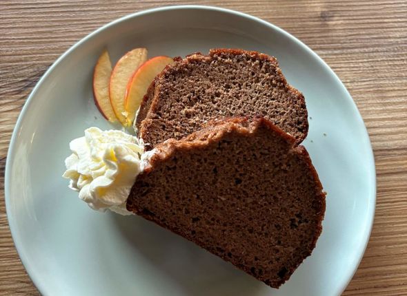 Backofen auf 175 °C vorheizen, Backform einfetten oder mit einem Backpapier auslegen. Apfelmus, Joghurt, Eier, Butter & Zucker verrühren.