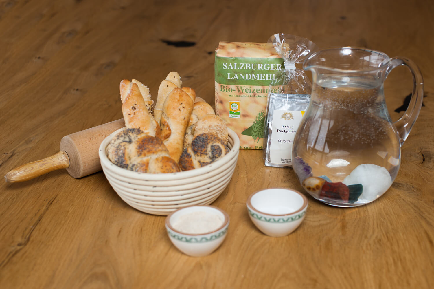 Mit Wasser besprühen und mit Mohn bestreuen. Am Backblech nochmals für ca. 10 Minuten rasten lassen und anschließend im vorgeheizten Backofen bei 210 Grad für ca. 20 Minuten mit viel Dampf backen.