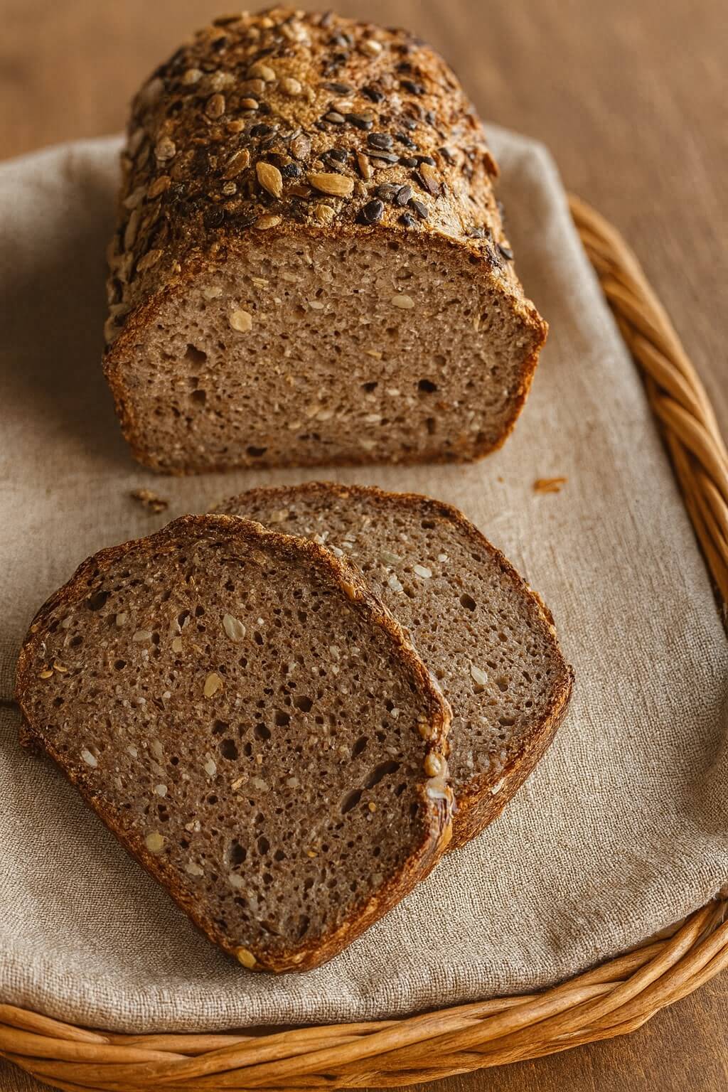Vor dem Backen: Oberfläche leicht mit Wasser befeuchten. Nach Wunsch mit Sonnenblumenkernen und