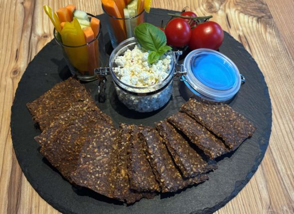 Alle Zutaten gut vermischen und die Masse etwa 10 Minuten quellen lassen. Anschließend gleichmäßig auf zwei mit Backpapier ausgelegte Backbleche streichen.
