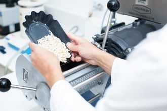 Additionally, we have a laboratory-scale corn degermination unit, which provides us with important insights into the raw material's processing characteristics and the yield of semolina.